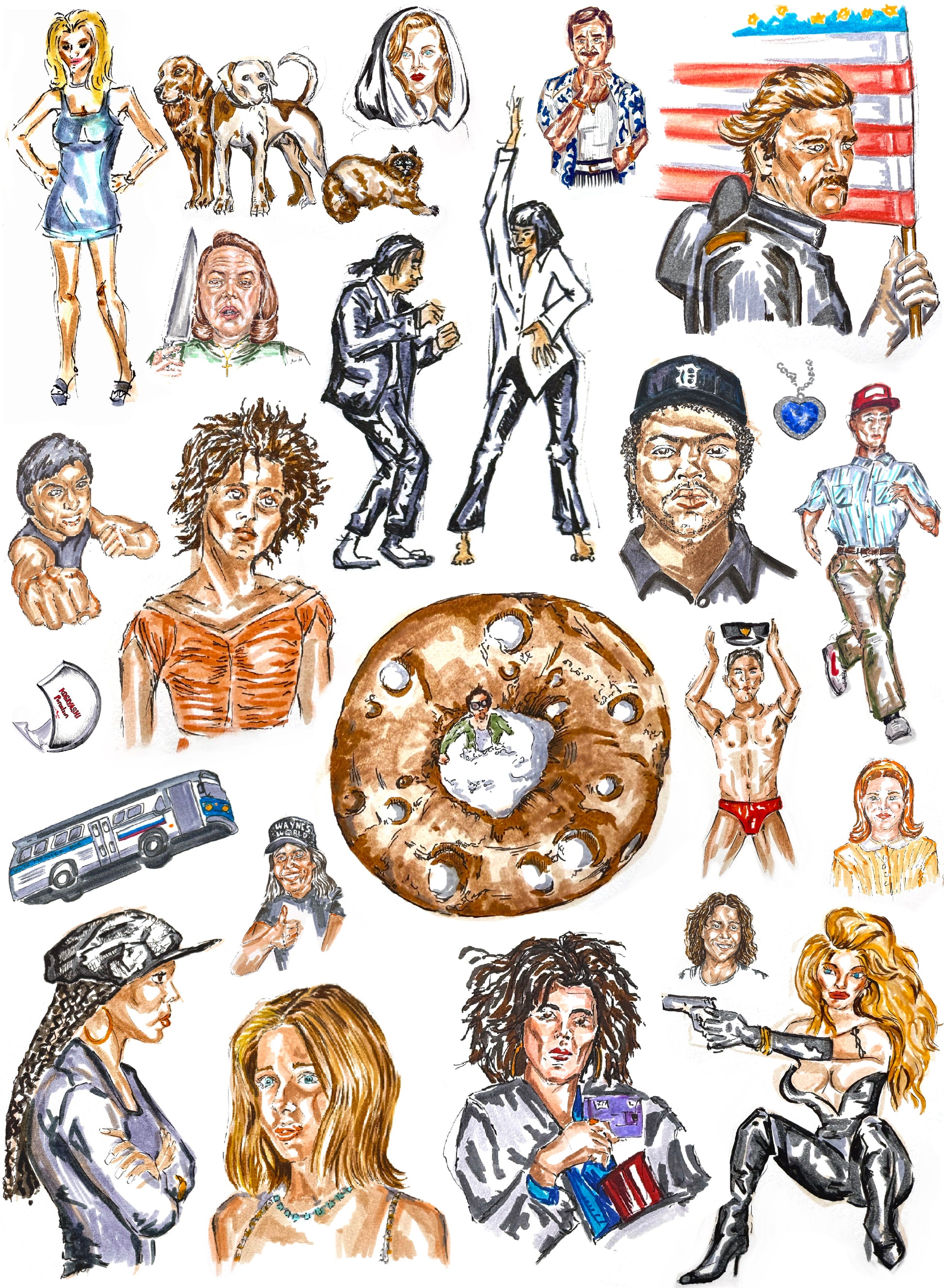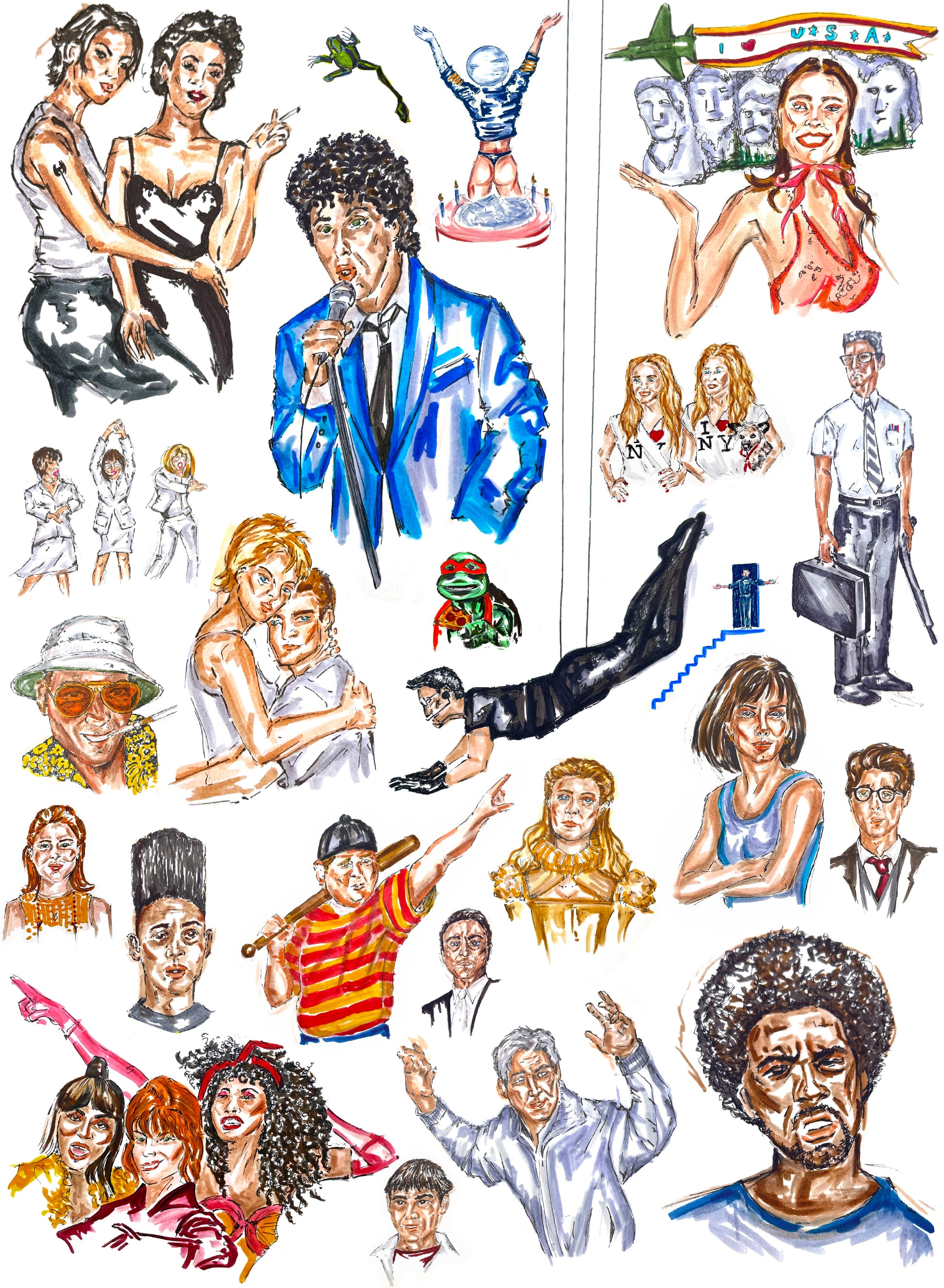 Rewind: The 90s in Frames is a five-panel art series celebrating the unforgettable characters, scenes, and emotions that defined a generation. From cult classics to box-office icons, each illustration captures a cinematic snapshot of the 90s — hand-drawn, vividly detailed, and unapologetically nostalgic.