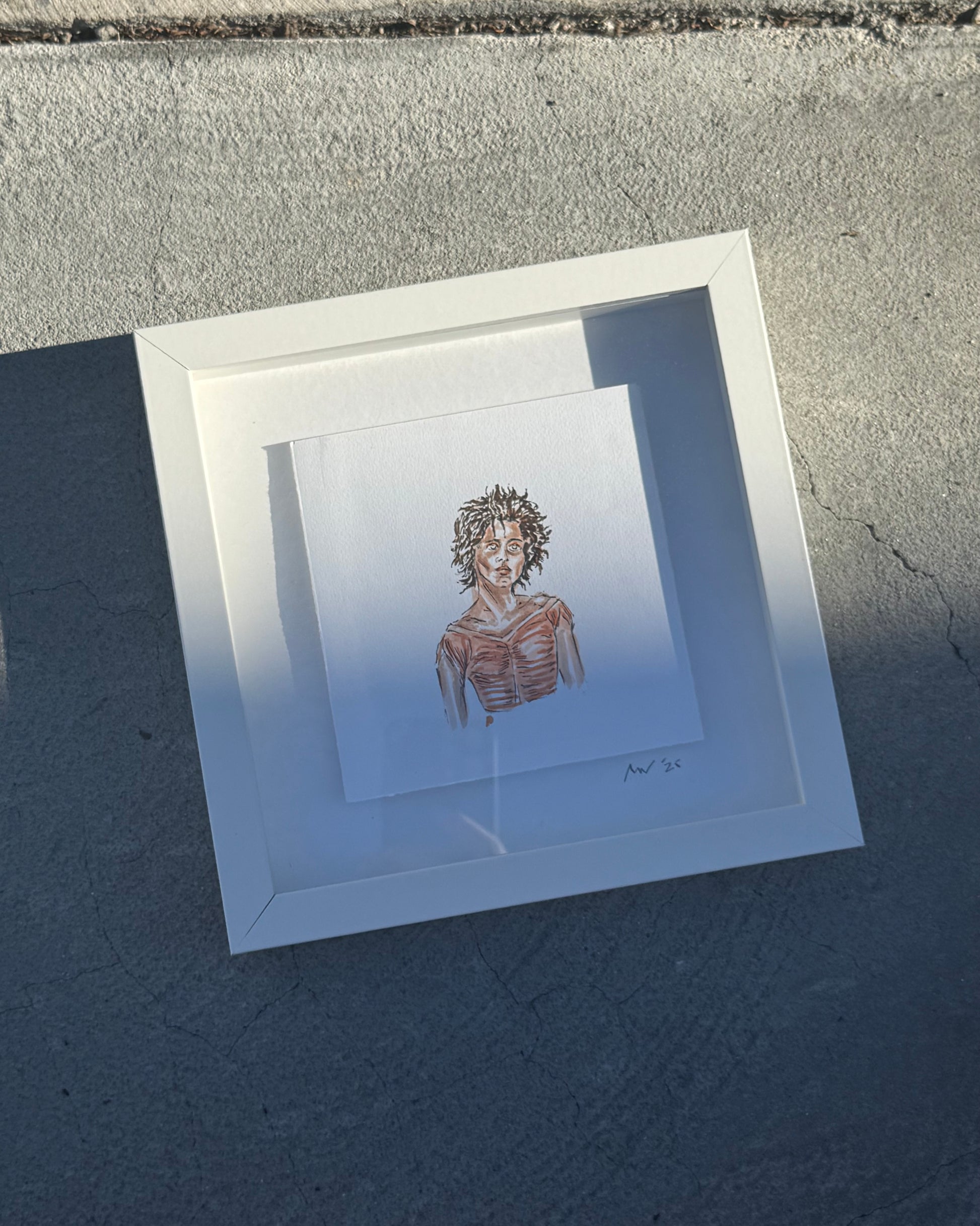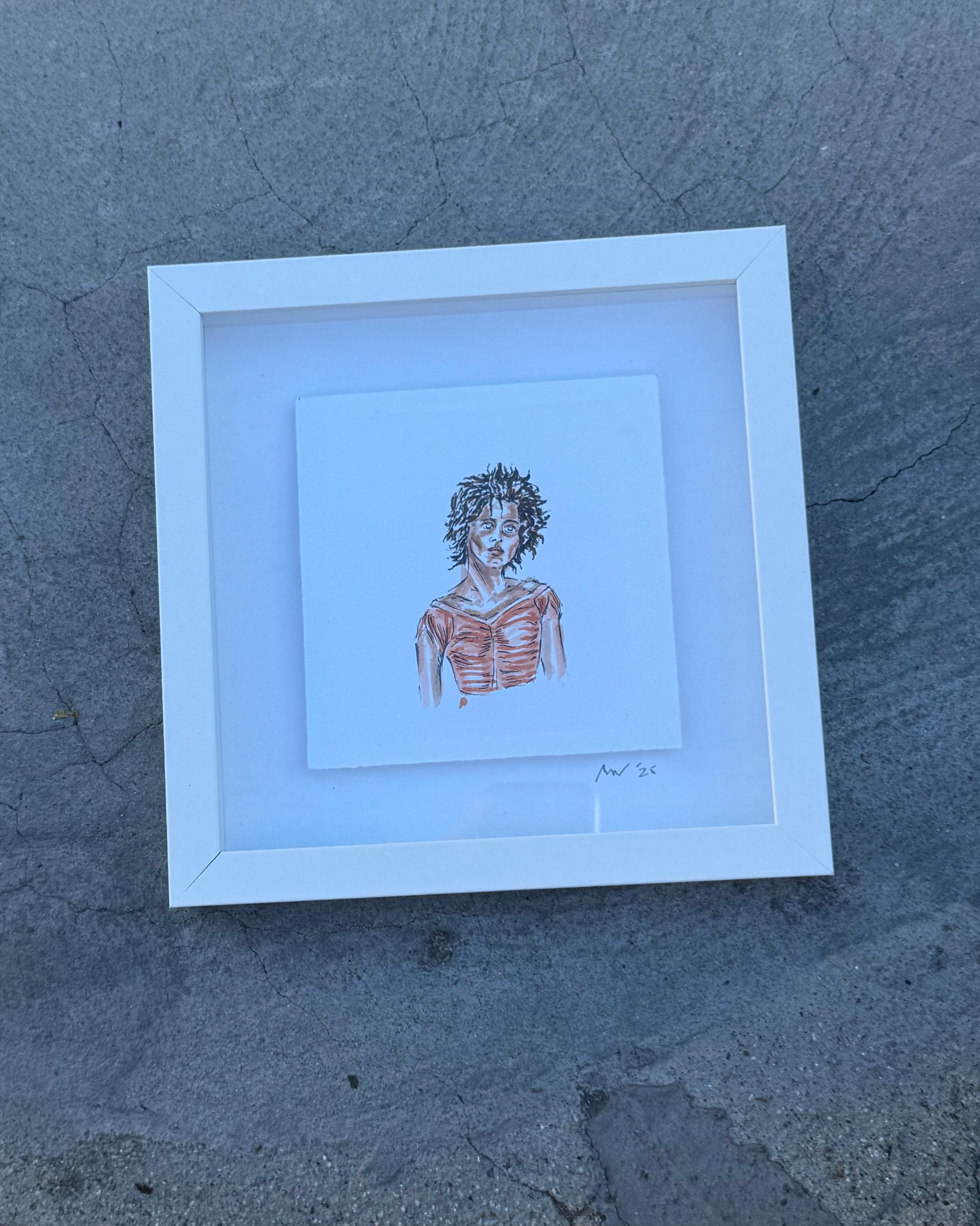 Artwork measures approx 6.5 x 6.5in a 8 x 8 frame.